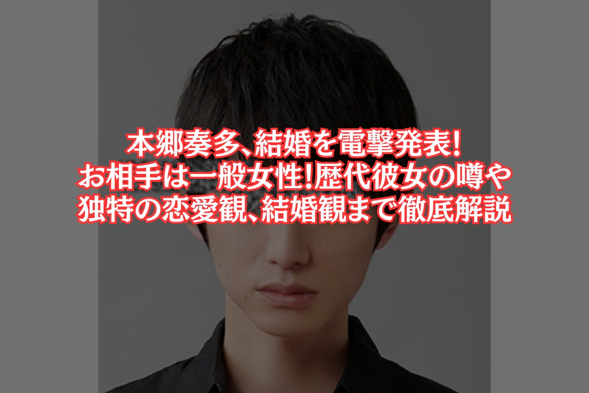 2026年元日、俳優の本郷奏多さん(35)が自身のX(旧Twitter)で一般女性との結婚を電撃発表しました。個性派俳優として唯一無二の存在感を放ち、YouTubeチャンネル「本郷奏多の日常」では飾らない素顔を見せて人気の本郷さん。突然の結婚報告に、日本中に衝撃と祝福の声が広がっています。この記事では、結婚発表の詳細から、謎に包まれたお相手、過去の恋愛遍歴、そして彼独特の恋愛観・結婚観まで、徹底的に深掘りしていきます。