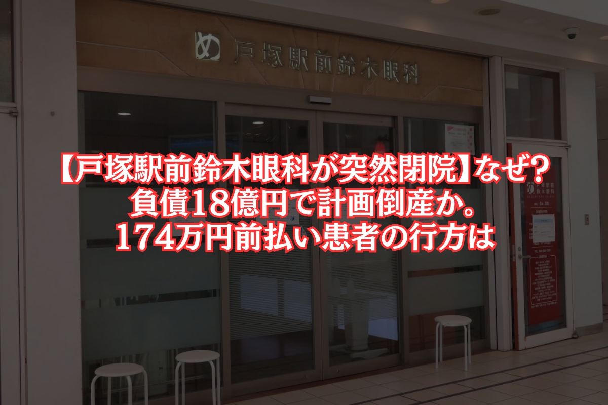 【戸塚駅前鈴木眼科が突然閉院】なぜ?負債18億円で計画倒産か。174万円前払い患者の行方は